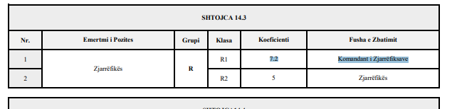 Zyra e Kryeministrit në dokumentin e publikuar ka nxjerr koeficientët e propozuar edhe për Zjarrëfikësit e Kosovës është, 5
