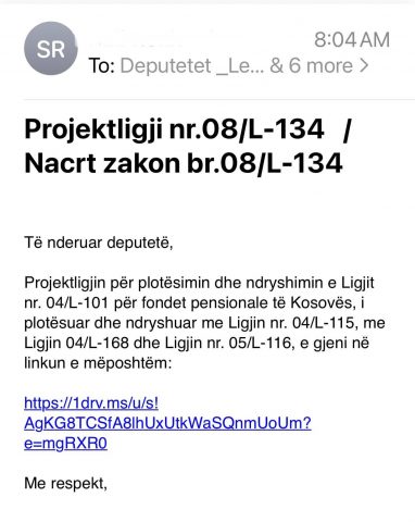 Deputeti i PDK-së, Bekim Haxhiu, njofton se Projektligji që mundëson tërheqjen e deri 30% të mjeteve nga Trusti u është shpërndarë sot deputetëve të Kuvendit të Kosovës.