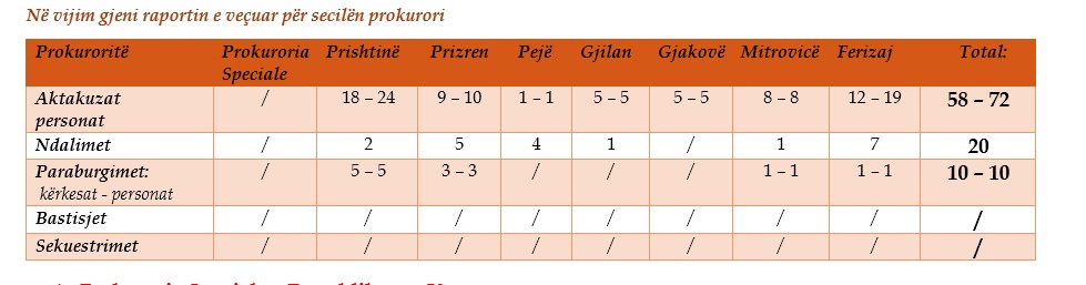 Prokurori i Shtetit ka njoftuar opinionin publik se gjatë 24 orëve të fundit nga prokuroritë themelore janë ngritur 58 aktakuza kundër 72 personave, për vepra të ndryshme penale, transmeton arbresh.info.