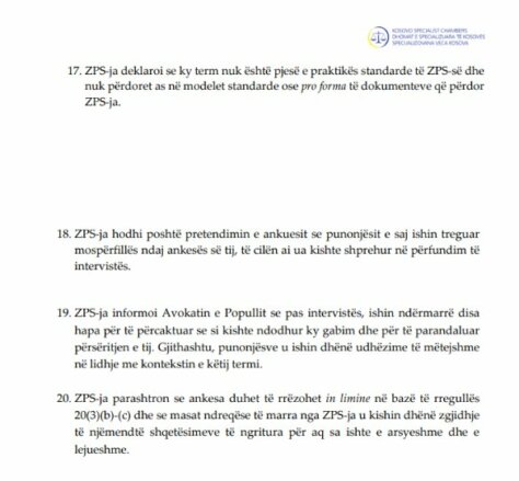 “ZPS-ja deklaroi se ky term nuk është pjesë e praktikës standarde të ZPS-së dhe nuk përdoret as në modelet standarde ose pro forma të dokumenteve që përdor ZPS-ja. ZPS-ja hodhi poshtë pretendimin e ankuesit se punonjësit e saj ishin treguar mospërfillës ndaj ankesës së tij, të cilën ai ua kishte shprehur në përfundim të intervistës. ZPS-ja informoi Avokatin e Popullit se pas intervistës, ishin ndërmarrë disa hapa për të përcaktuar se si kishte ndodhur ky gabim dhe për të parandaluar përsëritjen e tij. Gjithashtu, punonjësve u ishin dhënë udhëzime të mëtejshme në lidhje me kontekstin e këtij termi”, thuhet në arsyetimin e ZPS-së.