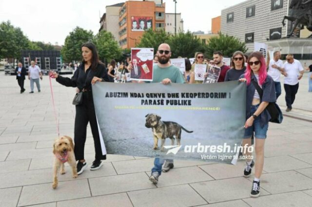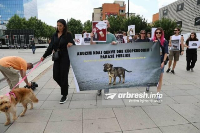 Aktivistët protestuan para ndërtesës së komunës, duke mbajtur pankarta me mbishkrime si “Drejtësi për qentë, ndal mizoritë” dhe “Abuzim ndaj qenve, keqpërdorim i parasë publike”.