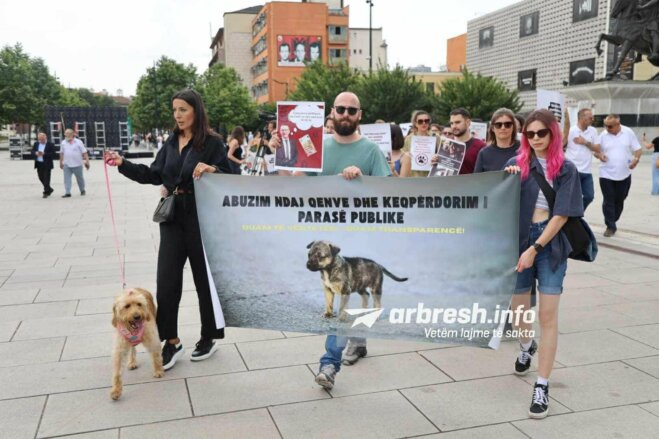 Aktivistët protestuan para ndërtesës së komunës, duke mbajtur pankarta me mbishkrime si “Drejtësi për qentë, ndal mizoritë” dhe “Abuzim ndaj qenve, keqpërdorim i parasë publike”.