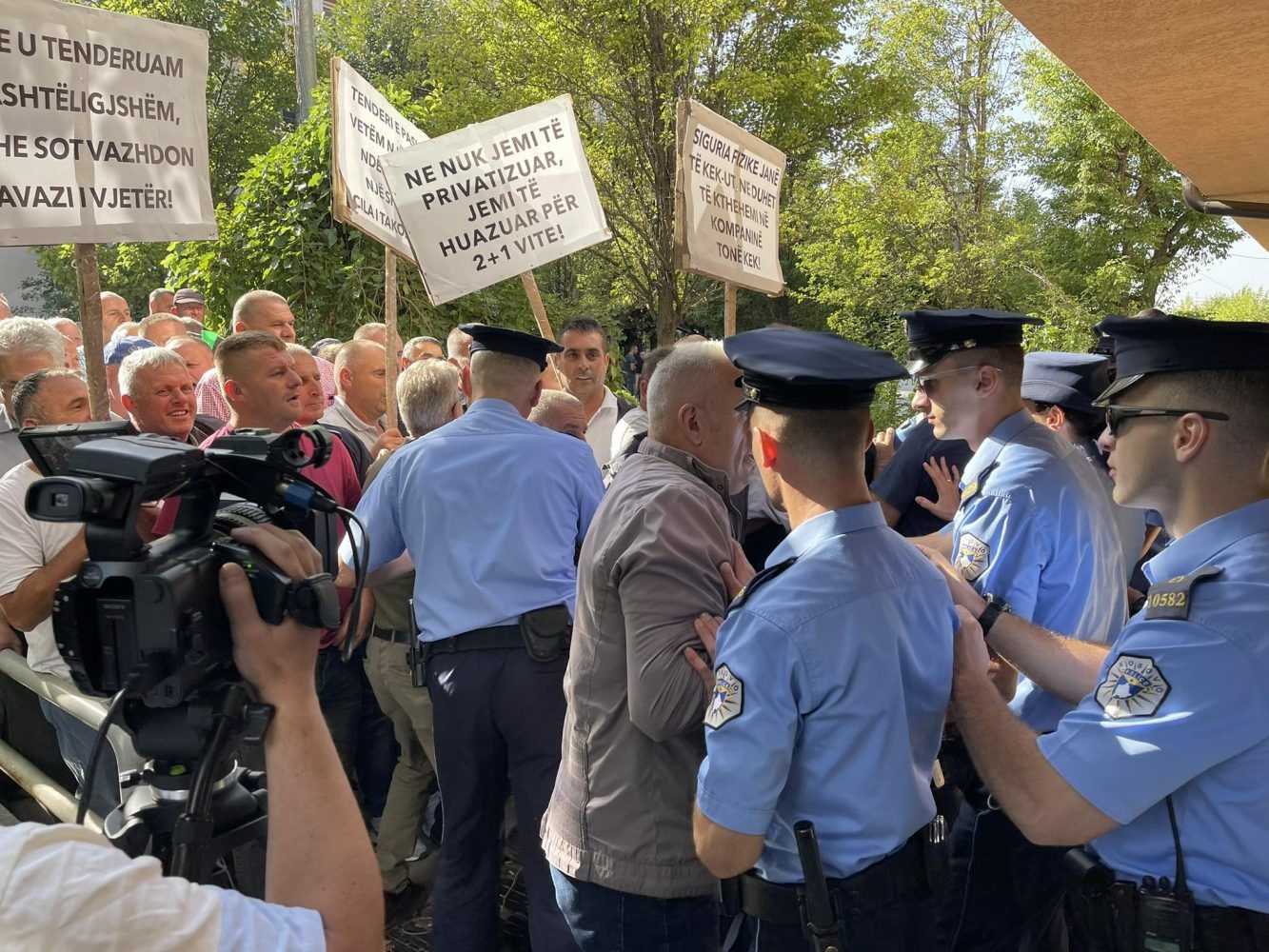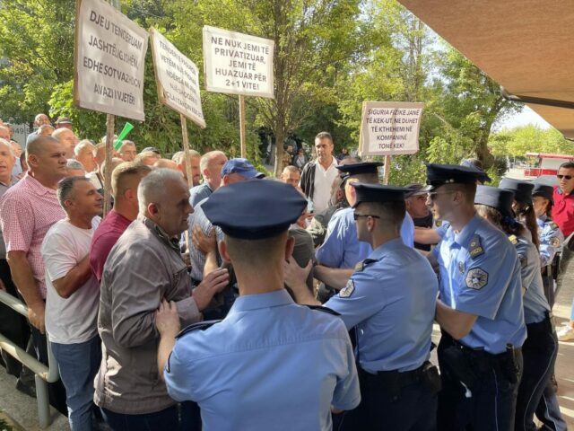 Shoqata Sindikale e Sigurimit Fizik në Korporatën Energjetike të Kosovës (KEK) gjatë protestës së të premtes janë përleshur me Policinë e Kosovës, pasi kanë tentuar që të futen në objektin e kompanisë.