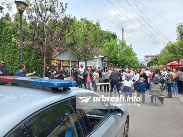 Protestuesit kanë zënë anësoret e rrugës, ku kanë vendosur çadra të diellit dhe janë duke qëndruar ulur në karrige të cilët po dëgjojnë këngë nacionaliste./Arbresh.info/