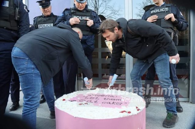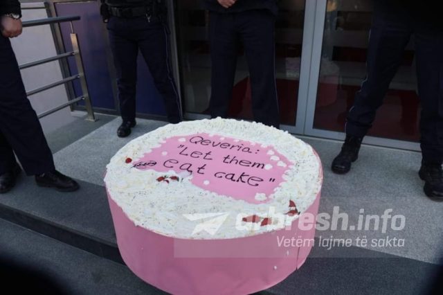 “Let them eat cake” apo “Le të hanë tortë” është mesazhi që është shkruar mbi tortë./arbresh.info/