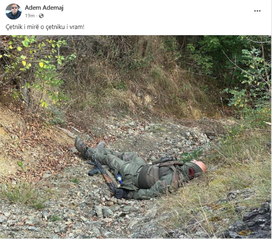 Në profilin e tij në Facebook, zyrtari policor, Adem Ademaj sipër fotografisë shkruan ”Çetnik i mirë o çetniku i vram!”.