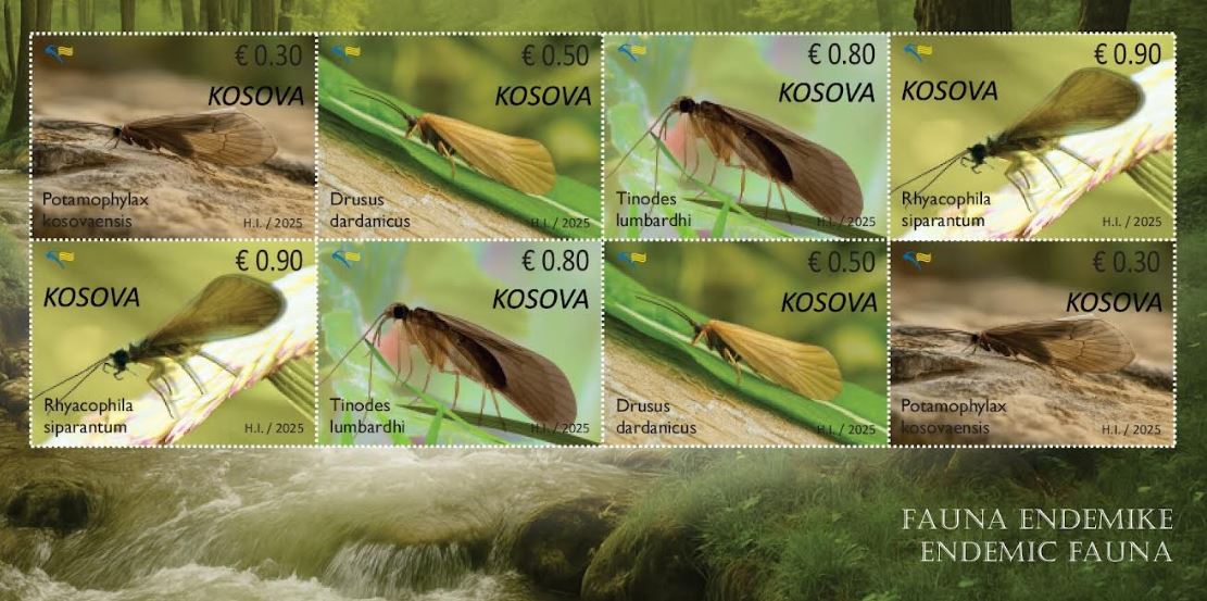 Më poshtë gjeni përshkrimin e Postës së Kosovës për zbulimin e katër llojeve të reja të insekteve ujore endemike: