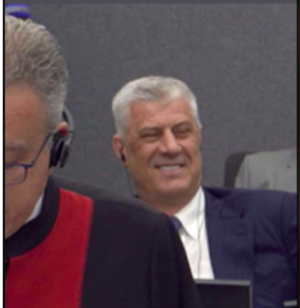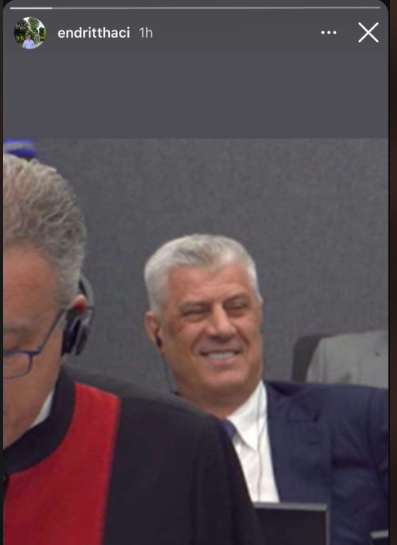 Djali i ish presidentit të Kosovës, Hashim Thaçi, Endriti ka ndarë një fotografi të babait të tij duke qeshur, derisa po dëshmonte Fadil Geci.