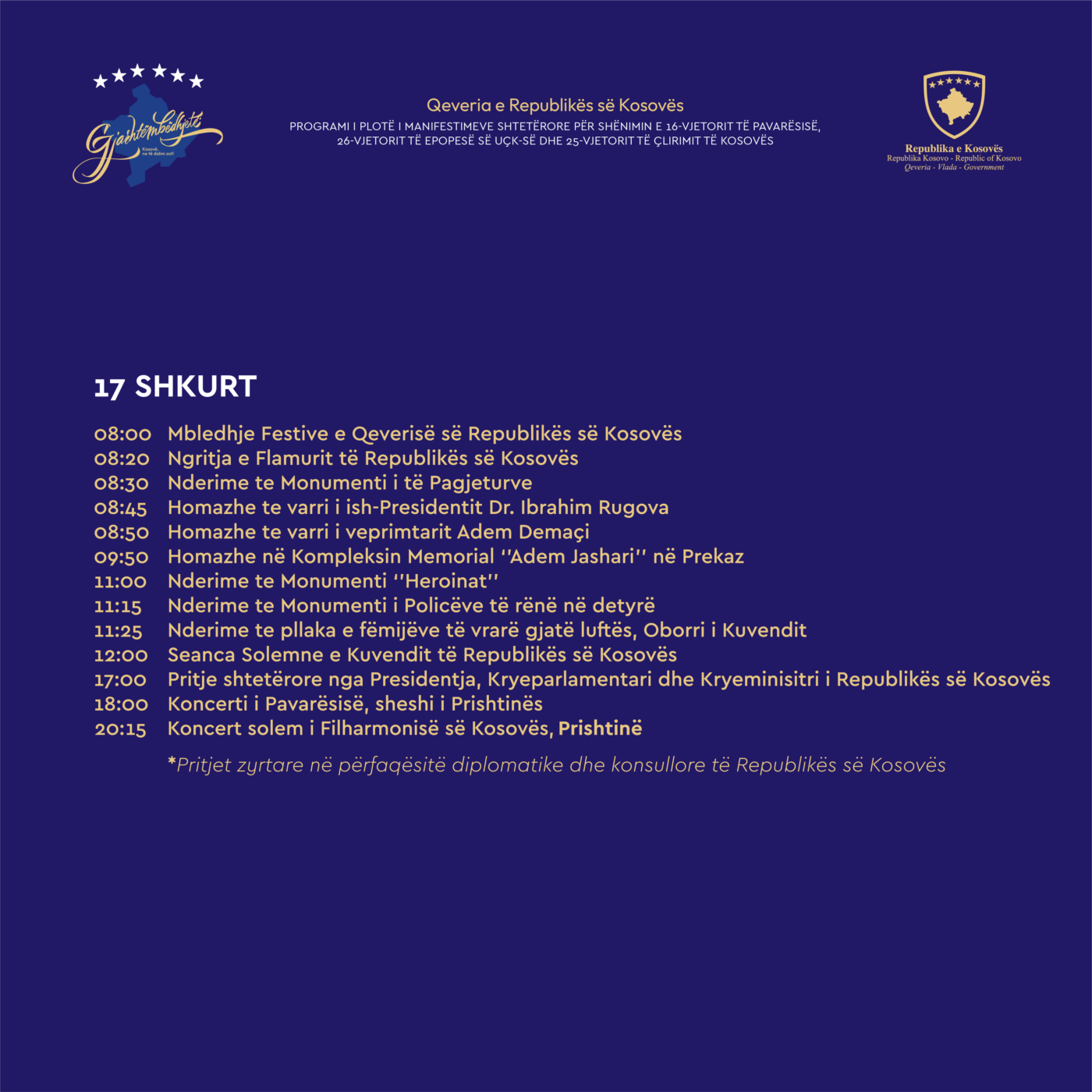 Më 17 shkurt, Kosova e shënon 16-vjetorin e shpalljes së Pavarësisë.