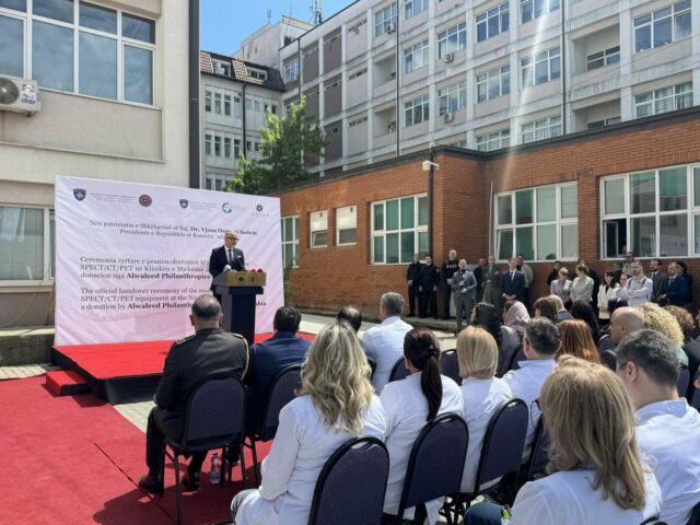 “Sot vërtet është një dite veçantë dhe ditë e suksesshme dhe e jashtëzakonshme për sektorin e shëndetësisë në vendin tonë. Kjo ditë dhe kjo ngjarje në zemër të Prishtinës jo vetëm që shënon një moment kulminant për shërbimin mjekësor që do t’i ofrohet qytetarëve tanë por është edhe një mundësi e rëndësishme që të festojmë partneritet tona që kapërcejnë kufijtë dhe që dëshmojnë ndikimin jashtëzakonisht të rëndësishëm të solidaritetit ndërnjerëzor. Në po këtë frymë po shënojmë së bashku një moment historik pasi me krenari përurojmë pajisjen mjekësorë në kliniken tonë të mjekësisë bërthamore brenda Qendrës Klinike Universitare të Kosovës”, tha Osmani.