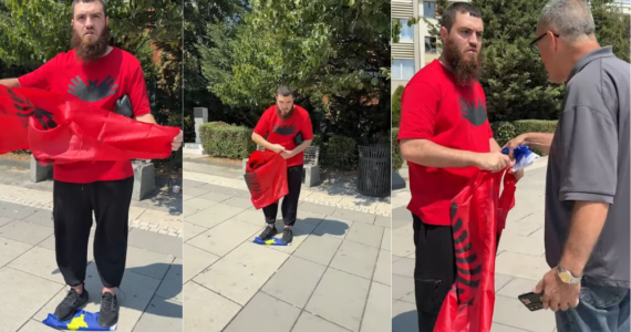 Një qytetar i ardhur nga Tirana, ka shkelur me këmbë flamurin e Kosovës në qendër të Prishtinës. Duke u thirrur në motivet patriotike për bashkim kombëtar, ai ka thënë se nuk e njeh flamurin shtetëror të Kosovës. Si rezultat, u kap edhe me një qytetar në shesh i cili ia mori flamurin dhe ia largoi … Continue reading Qytetari vjen nga Tirana dhe e shkel flamurin e Kosovës në qendër të Prishtinës, kapet me një kalimtar të rastit