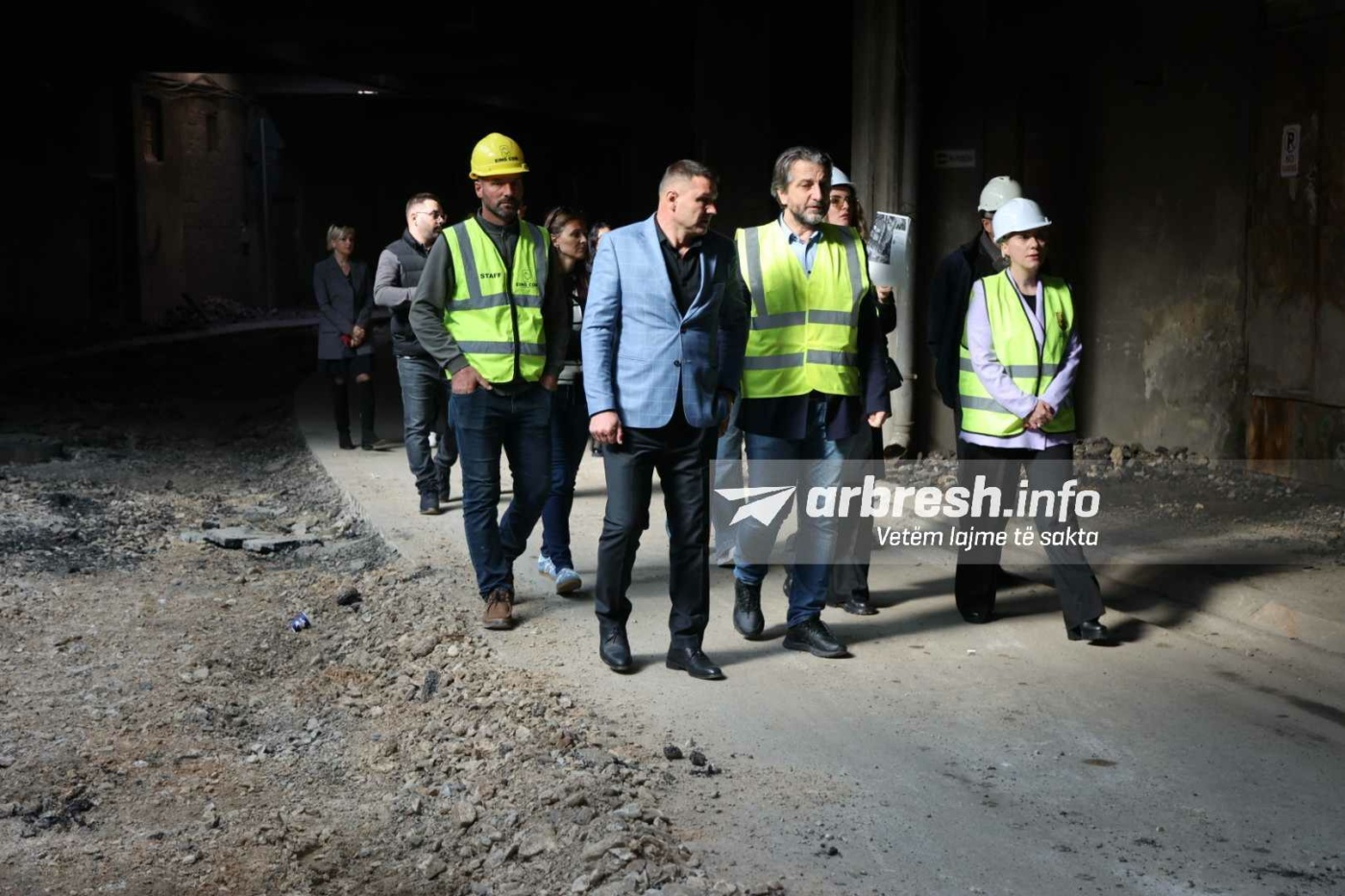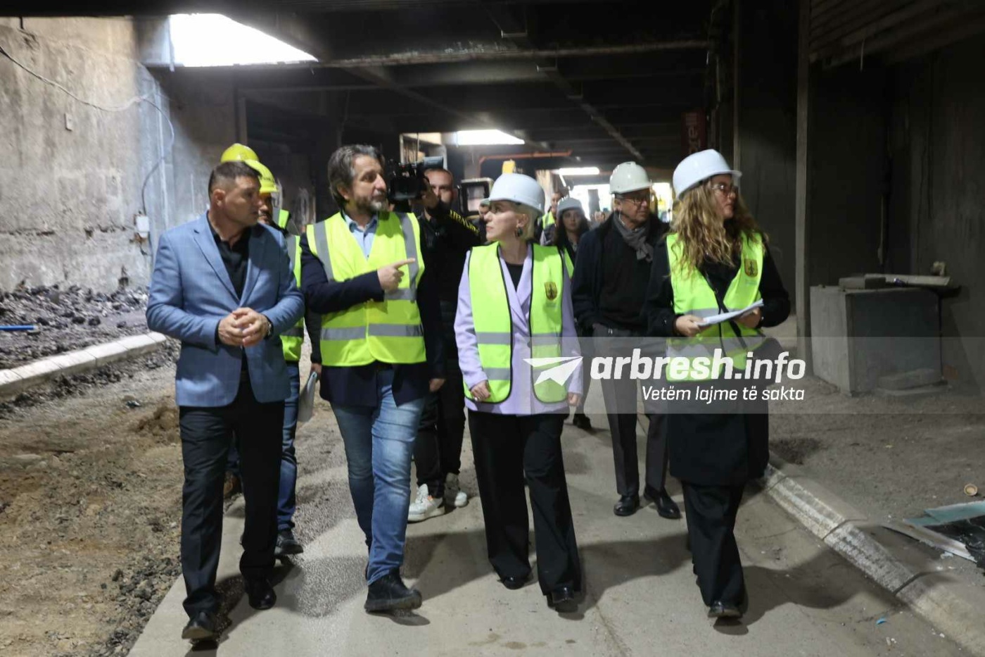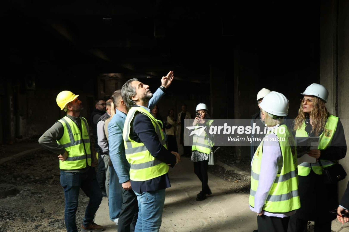 I shoqëruar nga drejtoresha për Kulturë, Sibel Halimi, kryetari Rama po sheh nga afër punën në tunel ndërsa flet edhe me punëtorët për ecurinë e punimeve./Arbresh.info/