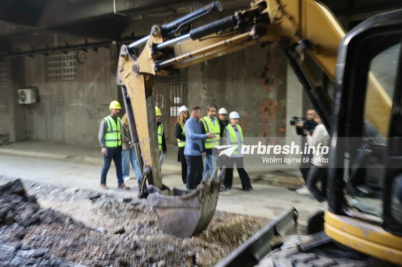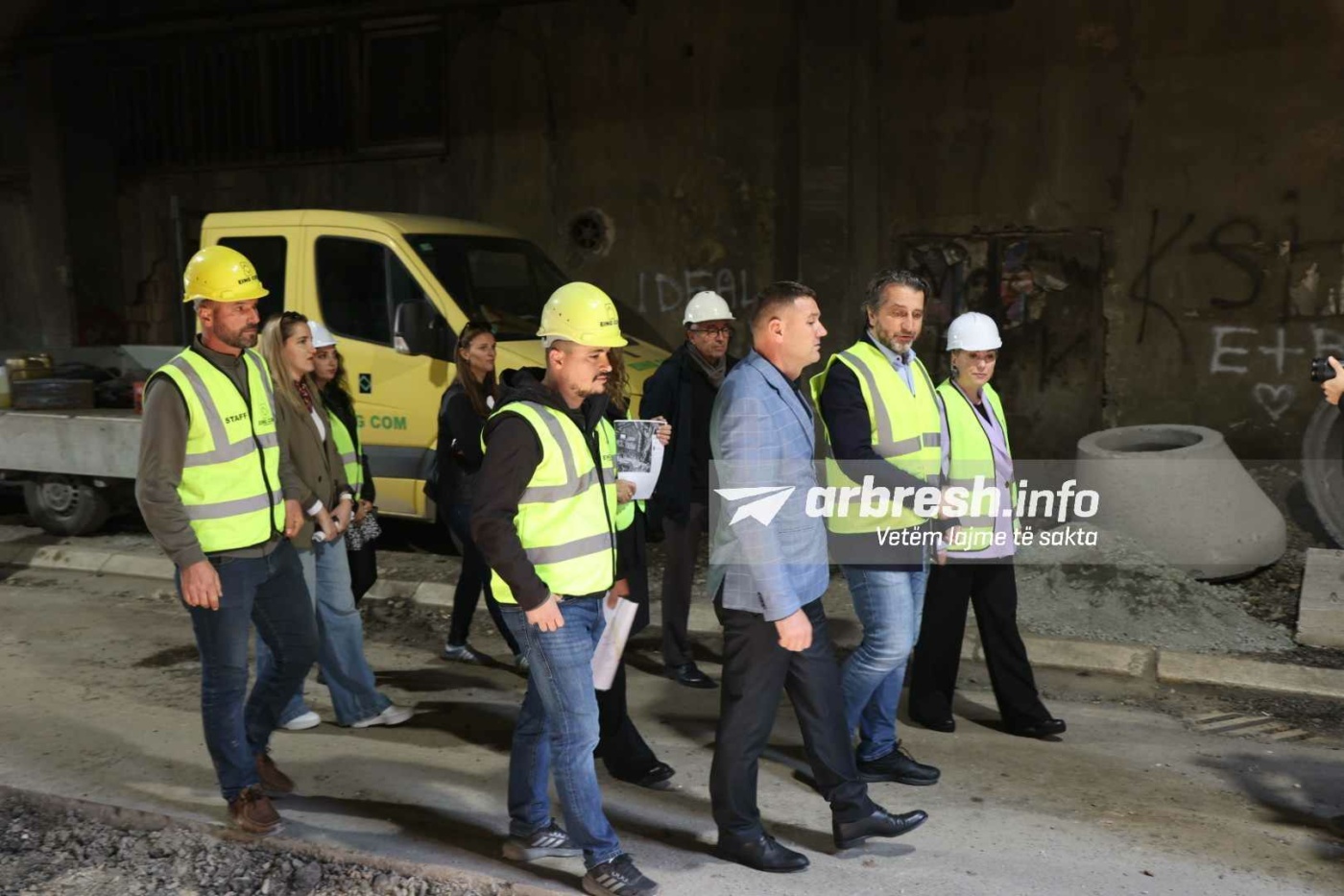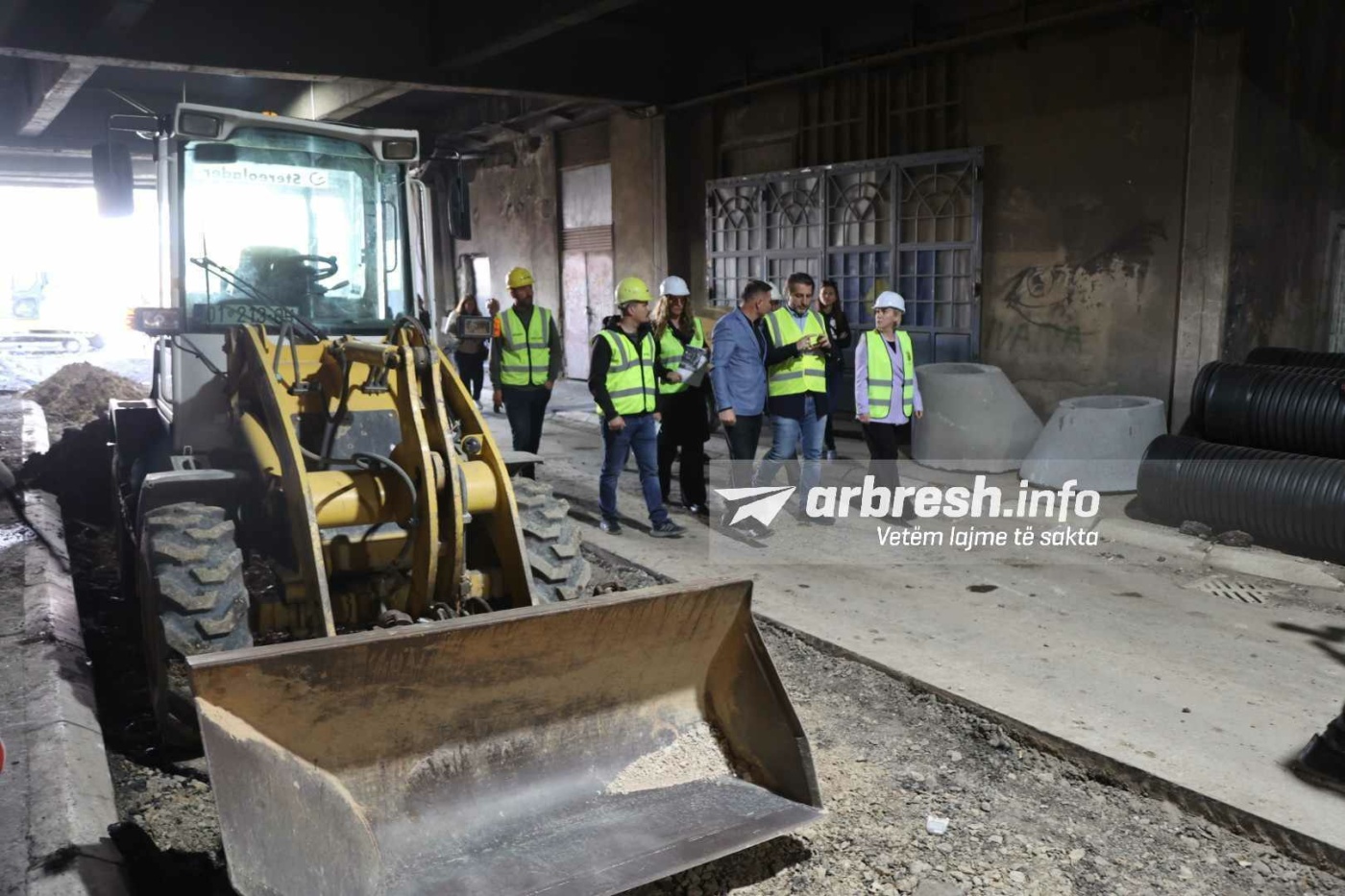 I shoqëruar nga drejtoresha për Kulturë, Sibel Halimi, kryetari Rama po sheh nga afër punën në tunel ndërsa flet edhe me punëtorët për ecurinë e punimeve./Arbresh.info/