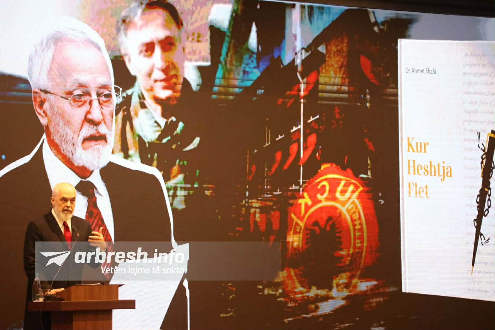 “Tani, mund të jetë sekret shtetëror këtu në Kosovë, por nuk është sekret shtetëror edhe për mua që presidentja e Kosovës është kërcënuar. Dhe këtë gjë nuk e dini sepse nuk është thënë asnjëherë, por po e them sot. Është kërcënuar sepse nuk ka lejuar që prokurorët të dhunonin zyrën e institucionit të Presidnetit të Kosovës, se me demek do të kërkonin edhe aty provat e krimeve kundër njerëzimit, gjë që natyrisht do ta vendoste Kosovën në sytë e botës si një shtet ku deri në zyrën e Presidentit gjenden prova për krime kundër njerëzimit. Dhe kërcënimi i presidentes ka zgjatur dy vjet. Por, për nderin e saj dhe nderin e Kosovës, ajo e ka ndaluar një gjë të tillë”, tha Rama në ceremoninë e promovimit të librit “Kur heshtja flet” të ish-ambasadorit Ahmet Shala.