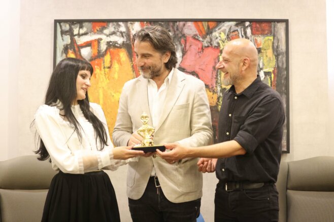 Ai ka nderuar dhe vlerësuar Beatriçe Gjergji dhe Kolë Laca duke i dhënë figurën ‘Hyjnesha në Fron’.