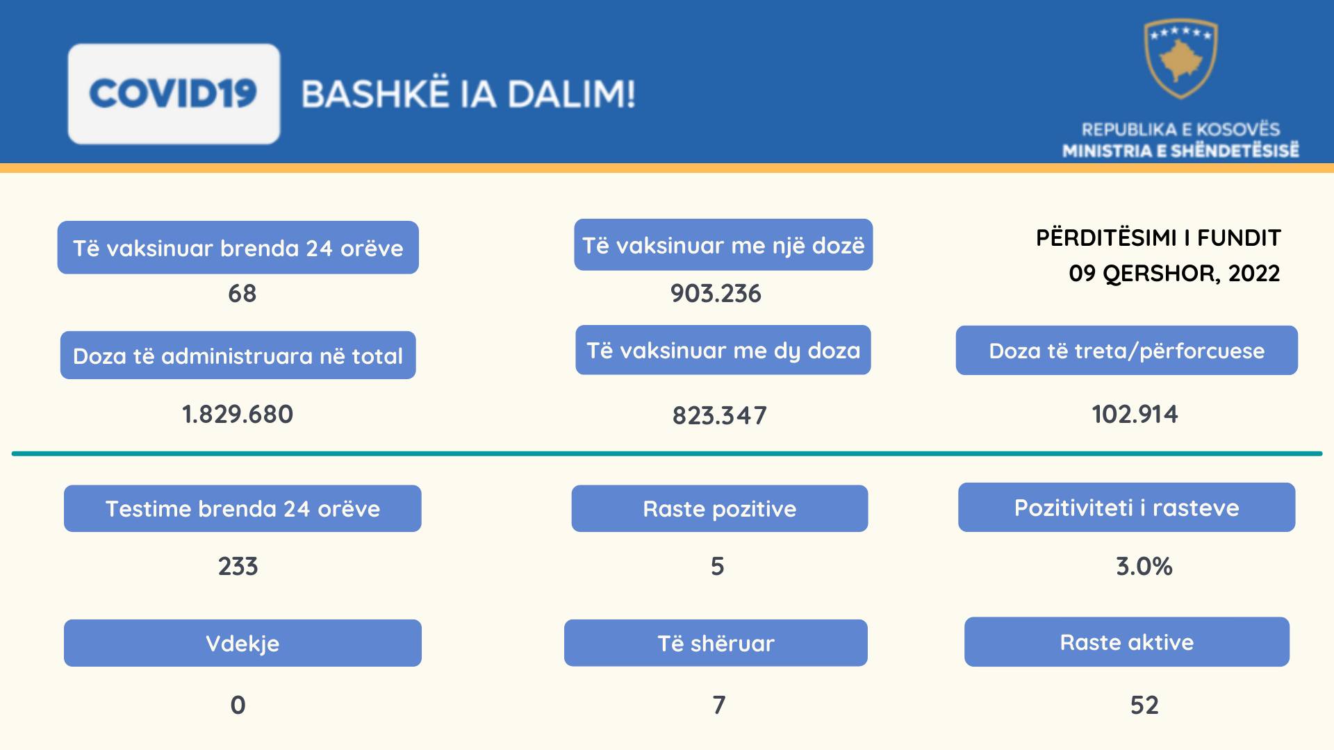 Janë shëruar shtatë qytetarë, derisa numri i përgjithshëm i të shëruarve është 225.221.