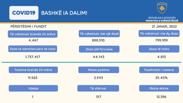 Prej fillimit të vaksinimit në të gjitha qytetet e Kosovës janë dhënë 1.737.417 doza të vaksinës.