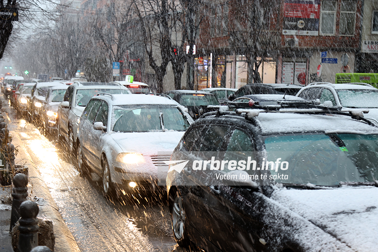 Reshjet e borës të cilat kanë filluar të bien në orët e pasdites kanë krijuar kolona dhe tollovi në rrugët e kryeqytetit.