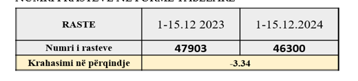 – Numri i përgjithshëm i rasteve ka shënuar rëne nga 47903 në 46300 ose -3.34%