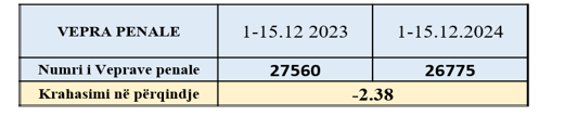 – Numri i veprave penale ka shënuar rëne nga 27560 në 26775 ose -2.38%.