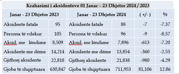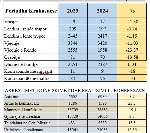 Disa nga statistikat e raportimit të krimit për këtë periudhë kohore të 2024;