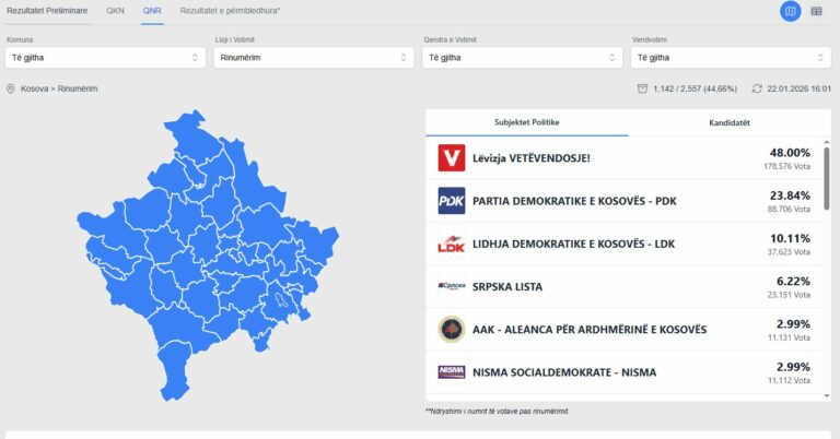 Sipas rezultateve të përditësuara, LVV ka 48%, PDK 23.84%, LDK 10.11% dhe AAK 2.99%. Procesi është përfunduar plotësisht në 9 komuna.