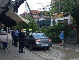 Si pasojë janë shkaktuar dëme materiale si rënia e shtyllës së energjisë elektrike dhe dëmtimi i një veture.