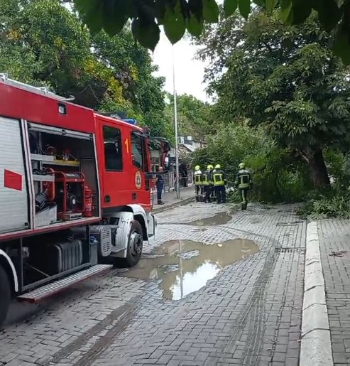 Siç shihet edhe në pamje, pema ka rënë mbi disa vetura të cilat ishin të parkuara.