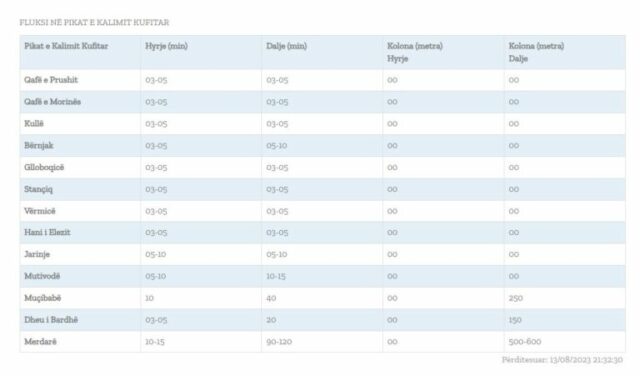 Sipas Qendrës Kombëtare për Menaxhim Kufitar, gjatësia e kolonave në këtë pikë kufitare është 500-600 metra, shkruan Arbresh.info.
