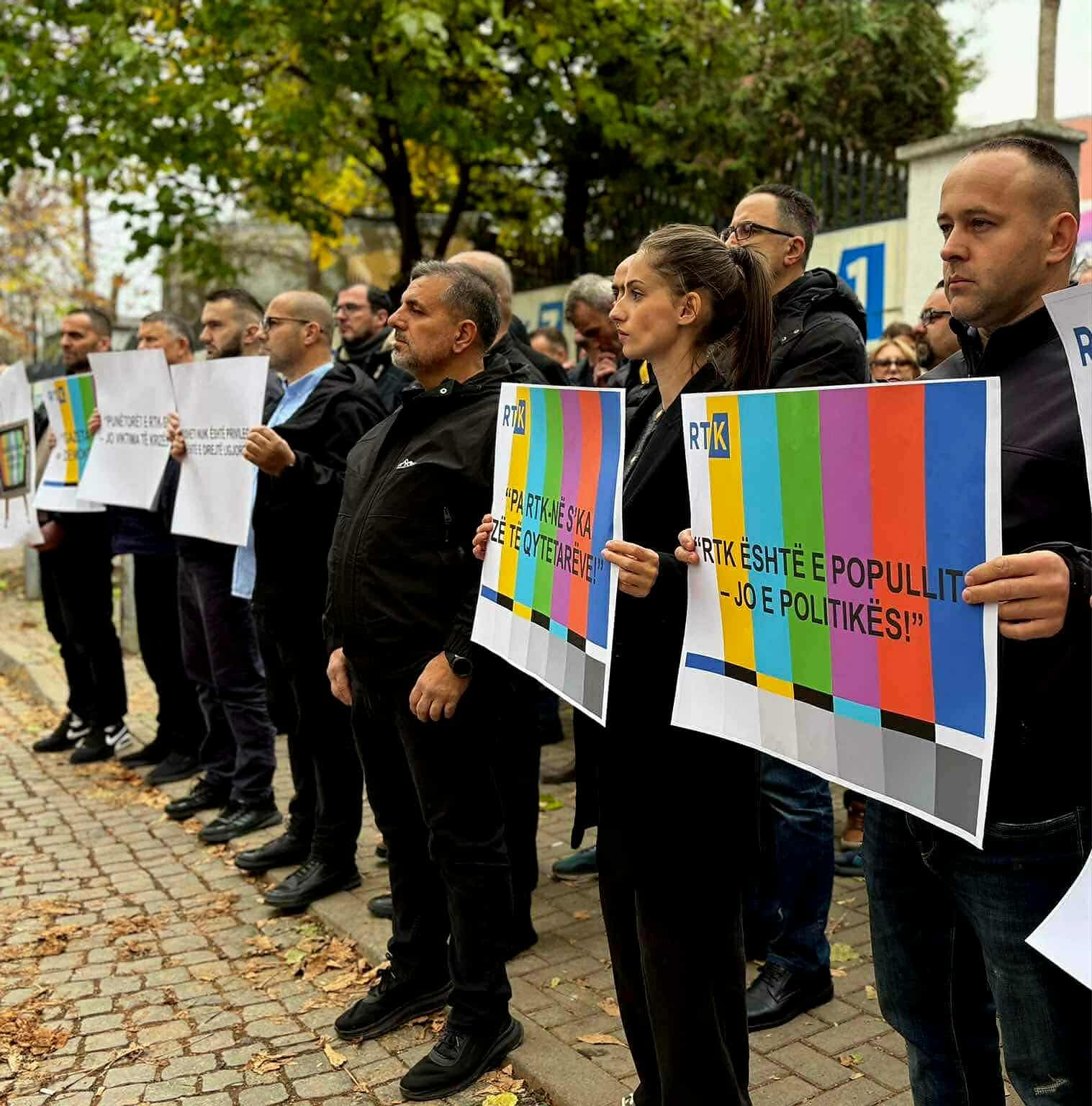 Sindikata e Punëtorëve të Radio Televizionit të Kosovës (SPERTK) protestoi para hyrjes së Radio Televizionit Publik për shkak të vonesave në pagesat e punonjësve.