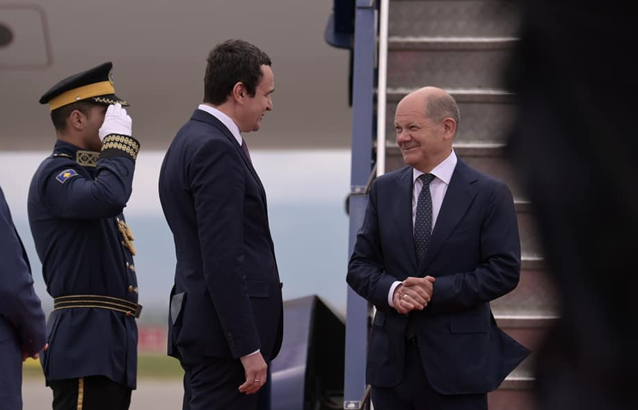 Scholz mbërrin në Prishtinë, Kurti e pret në Aeroport