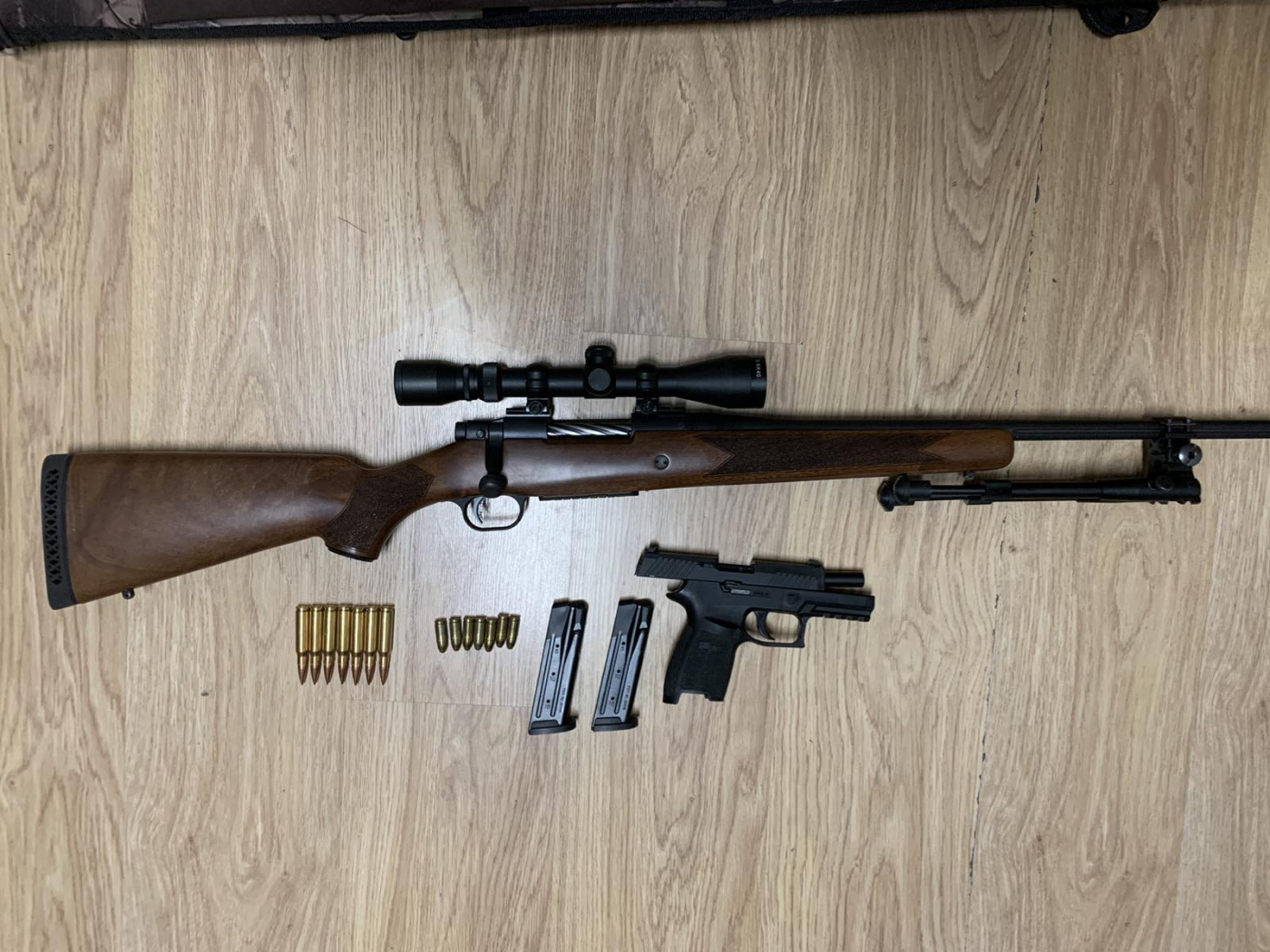 “Nga Gjyqtari i procedurёs paraprake kemi marrё udhёr pёr kontroll/bastisje tё shtëpisë dhe objekteve pёrcjellёse, gjatё kontrollit nё shtёpinё e tё dyshuarit i cili gjendet nё boten e jashtme janë gjetur dhe sekuestruar: Njё (1) Armё e gjatё automatike cal:7.62 dhe njё (1) karikator, Njё (1) Armё e gjatё tipi mosberg cal:308, dhe njё (1) dylbi e armёs, Njё (1) Pistoletё Sig Sauer cal:9×19 dhe dy (2) karikator, dyzet e shtatё (47) fishekё cal. 7.62 mm, njёzet e shtatё (27) fishekё cal 308 dhe dhjetё (10) gёzhoja, pesëdhjetë e shtatё (57) cal 9×19 dhe tridhjetё (30) gёzhoja, katёr (4) fishekё cal 9mm”, thuhet në njoftim.