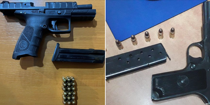 Përmes një postimi në faqen zyrtare, Policia ka bërë me dije se ka sekuestruar katër revole, tridhjetë fishekë, një thikë dhe një jelek antiplumb.