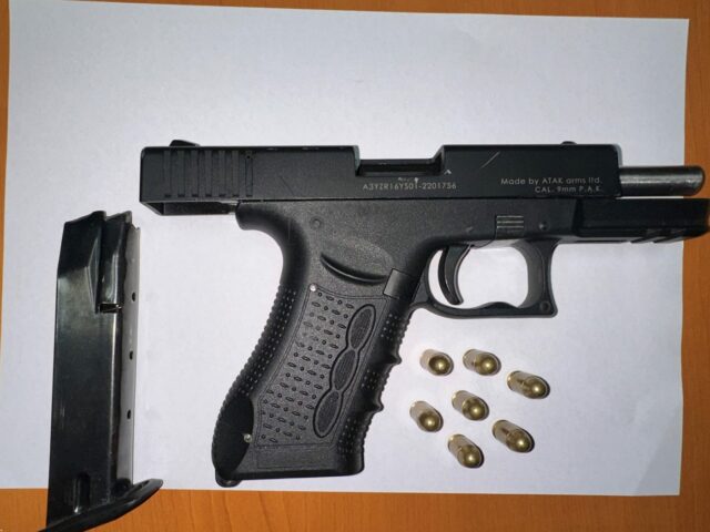 Në rastin e parë në Vushtrri, gjatë kontrollit në çantën e krahut te i dyshuari është gjetur dhe sekuestruar një armë pistoletë me 7 fishek dhe dy thika, përcjell Arbresh.info
