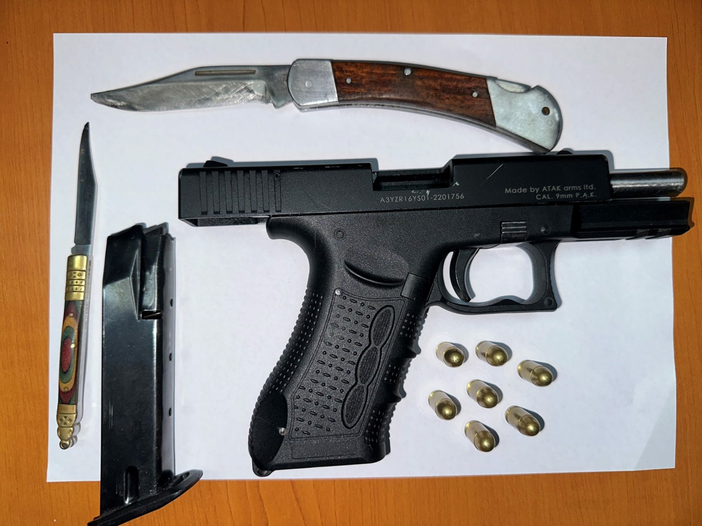Në rastin e parë në Vushtrri, gjatë kontrollit në çantën e krahut te i dyshuari është gjetur dhe sekuestruar një armë pistoletë me 7 fishek dhe dy thika, përcjell Arbresh.info