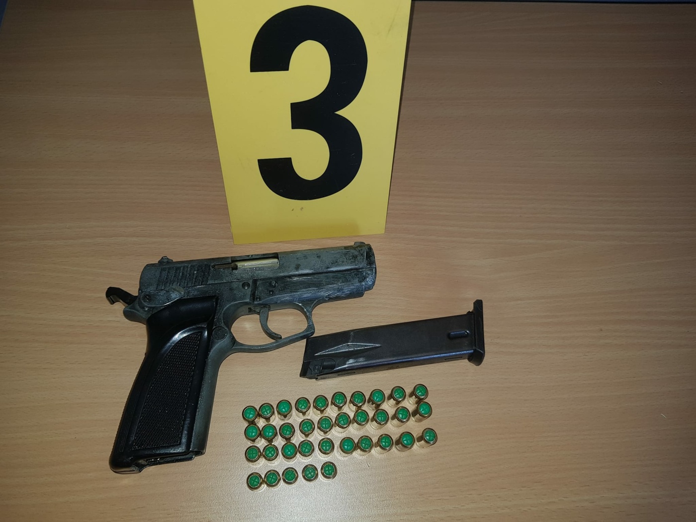 Pas kontrollit, Policia ka gjetur “një revole me gaz të tipit Bloë Compact, si dhe tridhjetepesë copë fishekë.”