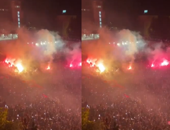Këtë e dëshmojnë pamjet të cilat jaën publikuar në rrjetin social tëitter, nga pjesëmarrësit në këtë ngjarje ndërsa dëgjohen duke brohoritur e duke i kënduar kthimit në Kosovë.