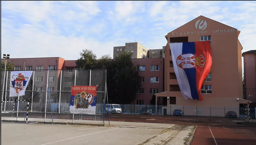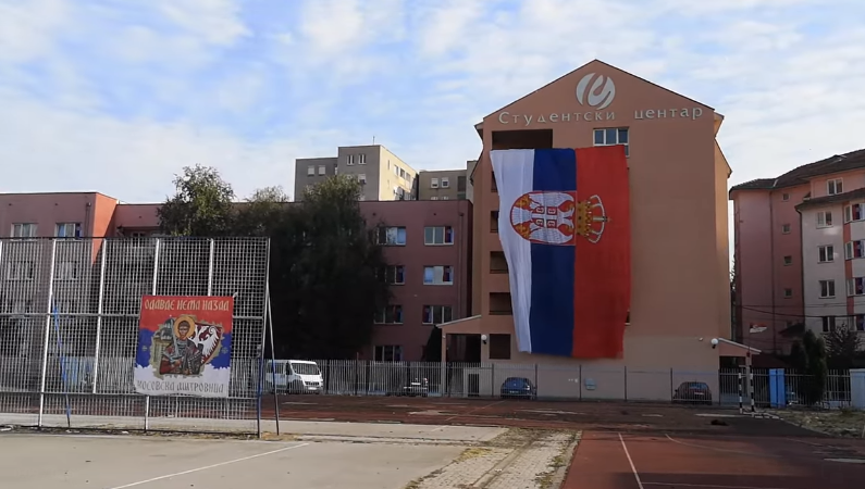 Serbët në Mitrovicën Veriore kanë shpalosur një flamur gjigant, të cilin e kanë vendosur në objektin e Qendrës së Studentëve “Prishtina”.
