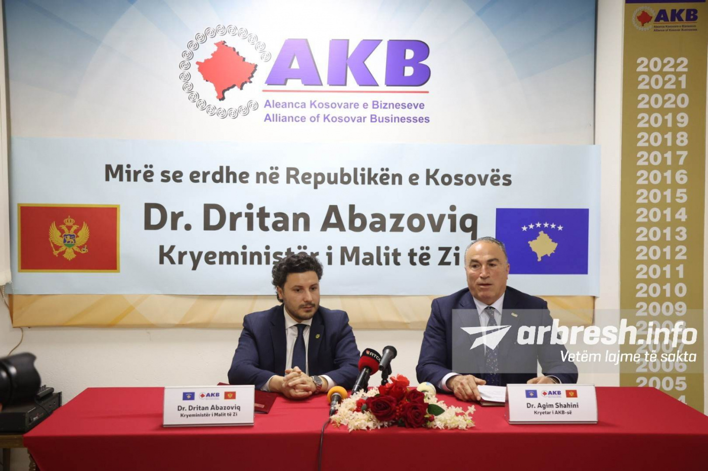 Kryeminstri në detyrë i Malit të Zi, Dritan Abazoviq sot është takuar me kryetarin e Aleancës së Kosovare e Bizneseve, Agim Shahini, në të cilën diskutuan për bashkëpunim në ekonominë e Kosovës dhe Malit të Zi që do të bëhen në të ardhmen.