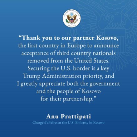 Në një deklaratë të publikuar nga Ambasada, u theksua se Kosova është vendi i parë në Evropë që ka pranuar të strehojë shtetas të vendeve të treta që janë larguar nga Shtetet e Bashkuara të Amerikës.