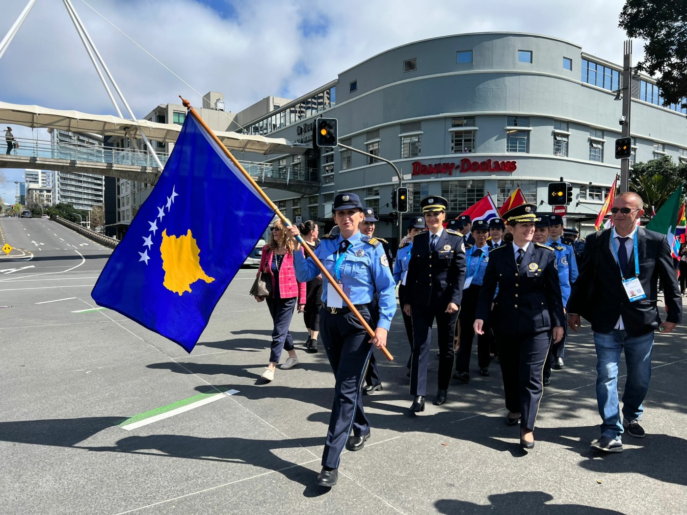 Pjesëtaret e Policisë së Kosovës parakalojnë në Paradën e Kombeve në Zelandën e Re