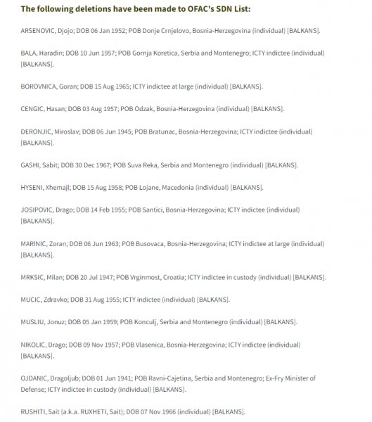 Ndërkaq, Departamenti amerikan i Thesarit ka njoftuar se ka larguar nga lista e të sanksionuarve disa persona nga Ballkani Perëndimor.