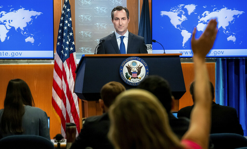 State Department spokesperson Matthew Miller answers questions about a American solider detained in North Korea after he willfully crossed the border from South Korea during a news briefing at the State Department on Tuesday, July 18, 2023, in Washington. (AP Photo/Nathan Howard)
