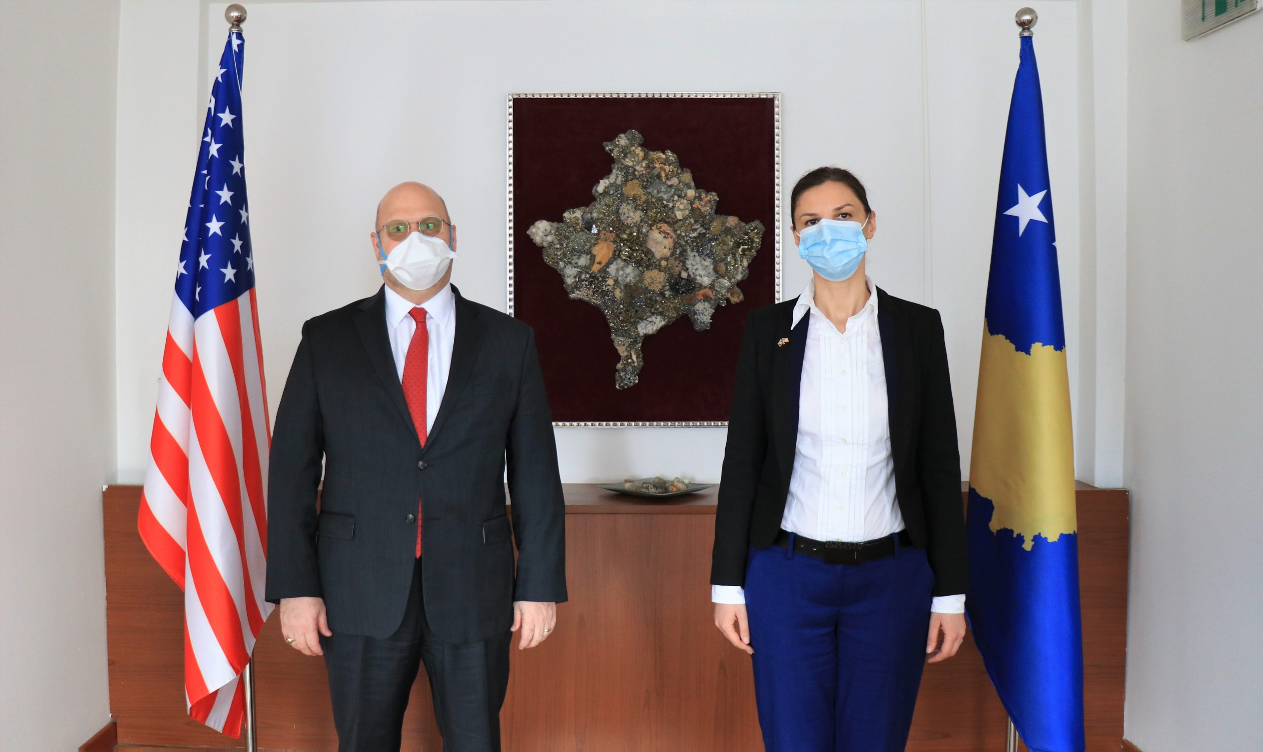 Ministrja e Ekonomisë, Artane Rizvanolli priti sot në takim Ambasadorin e ri të Shteteve të Bashkuara të Amerikës në Kosovë, Jeffrey M. Hovenier.