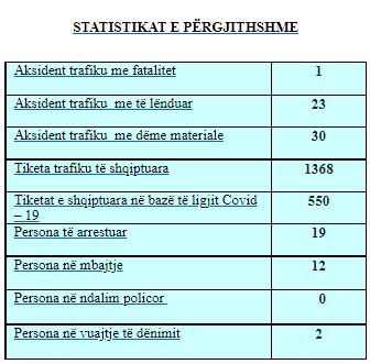 Gjatë kësaj periudhe ka ndodhur një aksident me fatalitet, 23 aksidente me të lënduar si dhe 30 me dëme materiale.