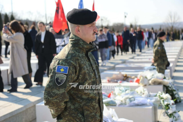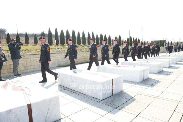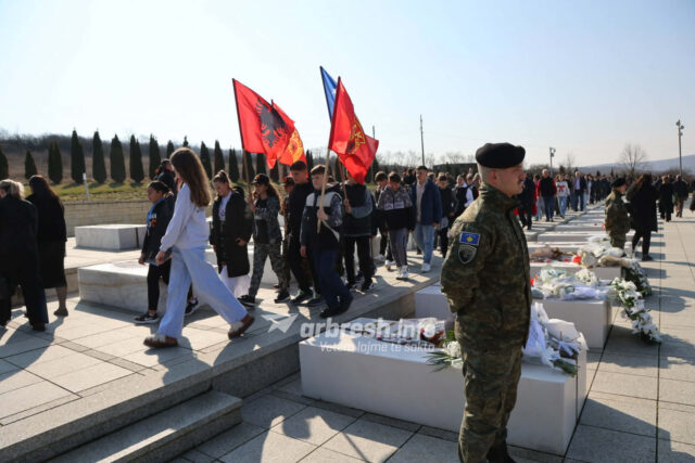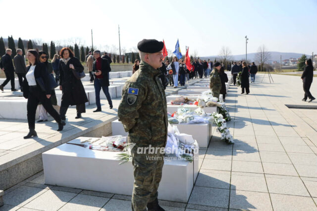 Ceremonitë e homazheve zhvillohen në Kompleksin Memorial Adem Jashari, ku qytetarët nderojnë sakrificën e luftëtarëve të UÇK-së.