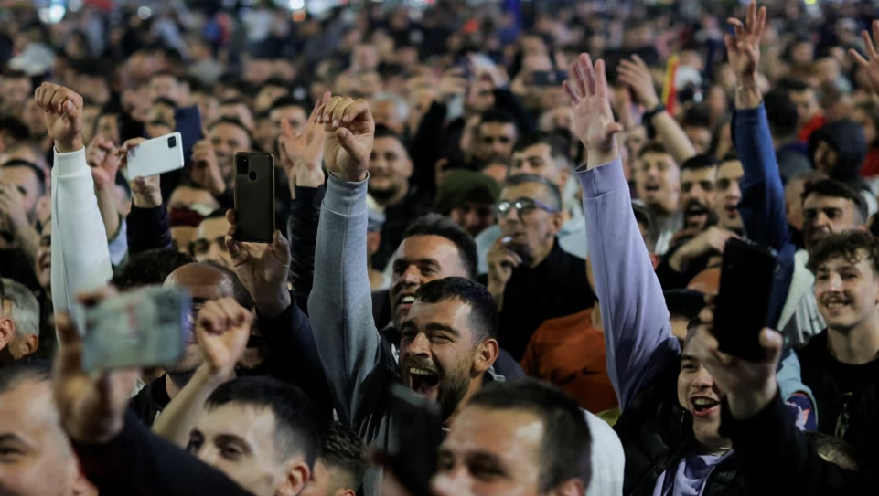 Mbështetës të VMRO DPMNE-së festojnë në Shkup, 8 maj 2024