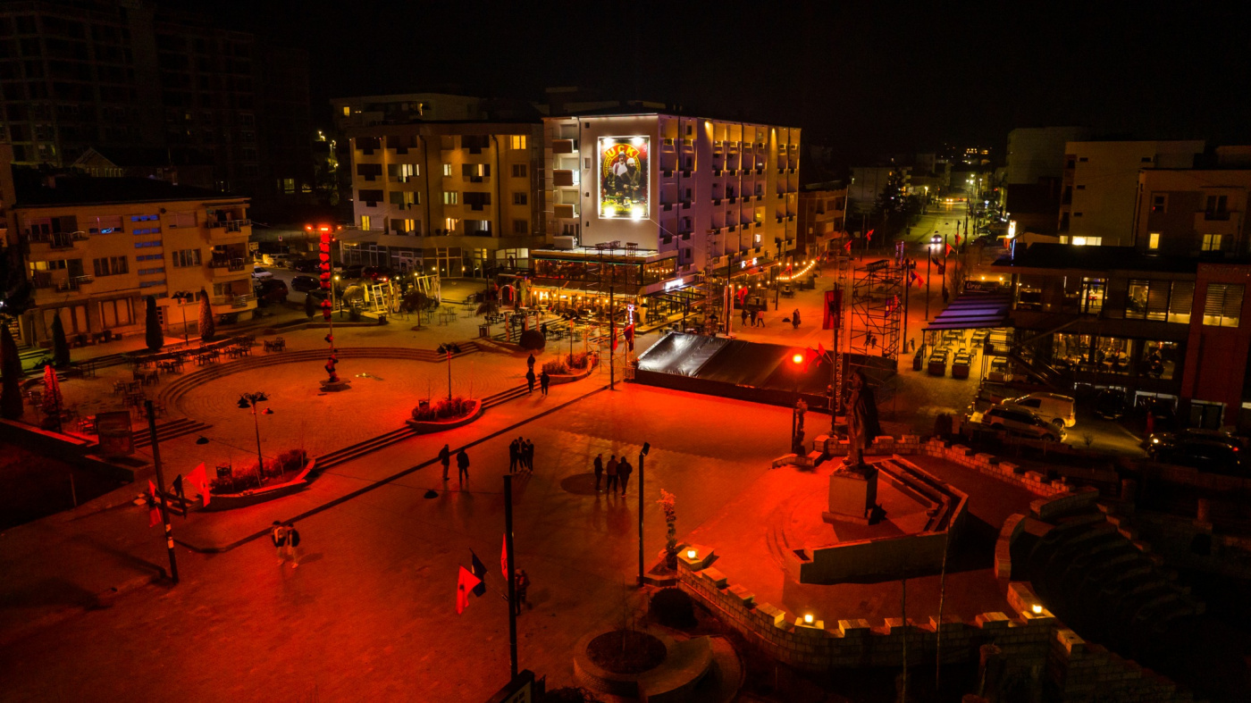 Sheshi kryesor në Skenderaj, i cili mban emrin e legjendarit “Adem Jasharit”, për nder të kësaj date, sonte ka marrë ngjyrën e kuqe.