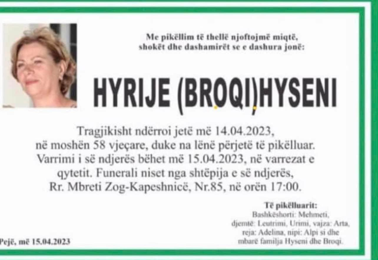 Familjarët e së ndjerës kanë njoftuar se varrimi do të bëhet në orën 17:00.