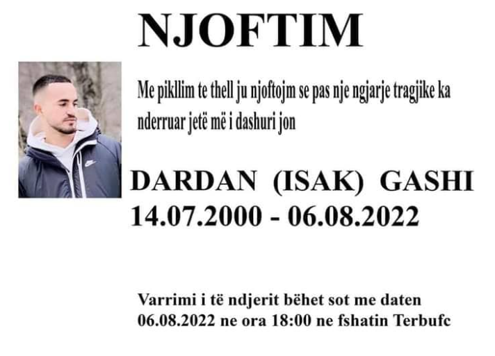 I riu që ka vdekur si pasojë e plagëve të marra është Dardan Gashi, transmeton klankosova.